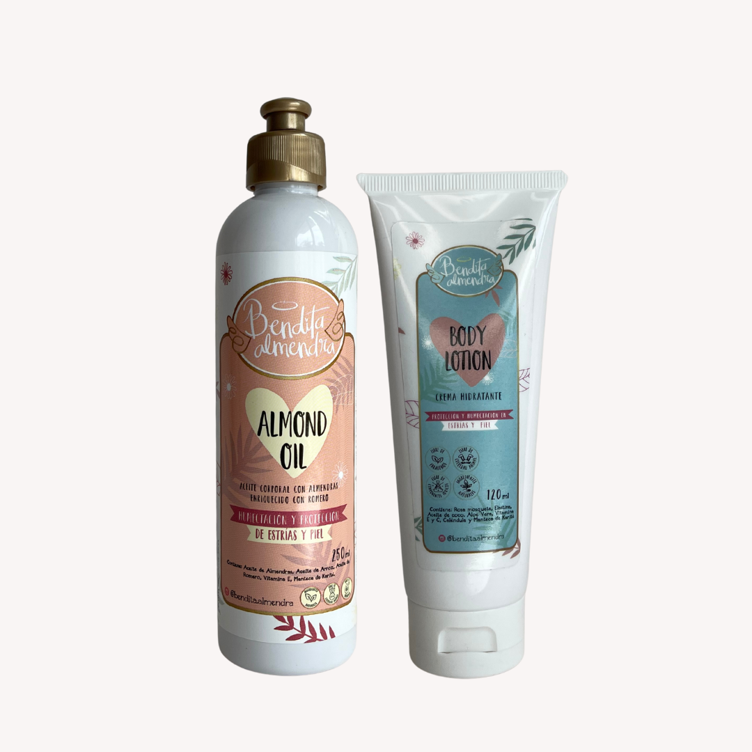 Cuidar tu piel durante los últimos meses de embarazo es esencial, ya que es cuando más susceptible está de desarrollar estrías. Este kit eliminación no solo protege tu piel en esta etapa crucial, sino que también es efectivo en cualquier fase de la vida, incluso si ya tienes estrías blancas antiguas. El kit incluye nuestra línea anti estrías con Almond Oil y Body Lotion, especialmente formulada para aliviar las piernas cansadas y mejorar visiblemente la apariencia de las estrías. Gracias a su capacidad para regenerar los tejidos y estimular la producción de colágeno, este kit es ideal para tratar y mejorar la apariencia de las estrías, sin importar su antigüedad o el momento en que aparecieron. Ya sea durante el embarazo, post parto o en cualquier otra etapa, este kit te ayudará a lucir una piel más suave, uniforme y saludable.